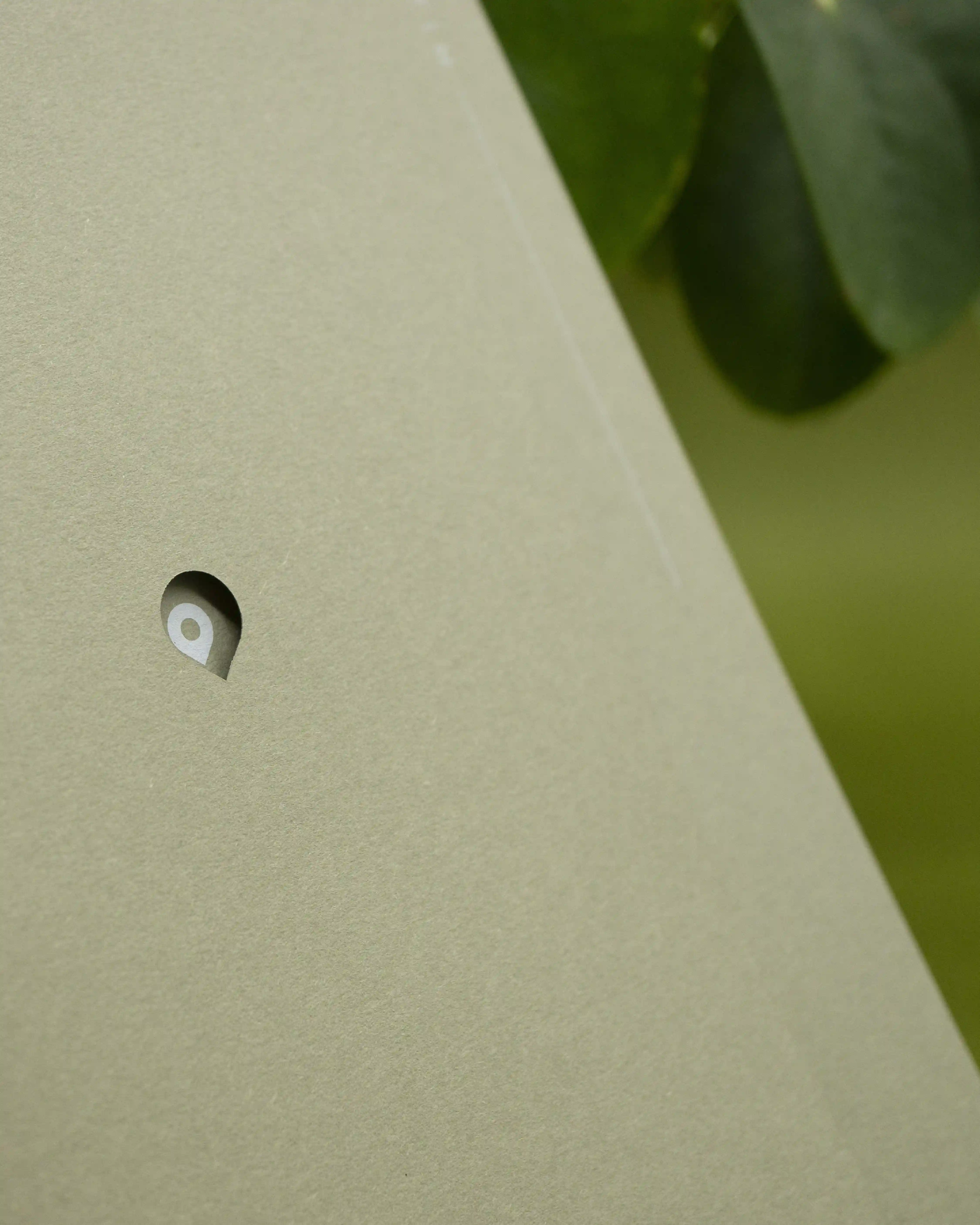 L’originalité ici vient avec la sur couverture et la découpe à la forme d’une goutte embellissant le projet. Une impression blanche sur un papier texturé.