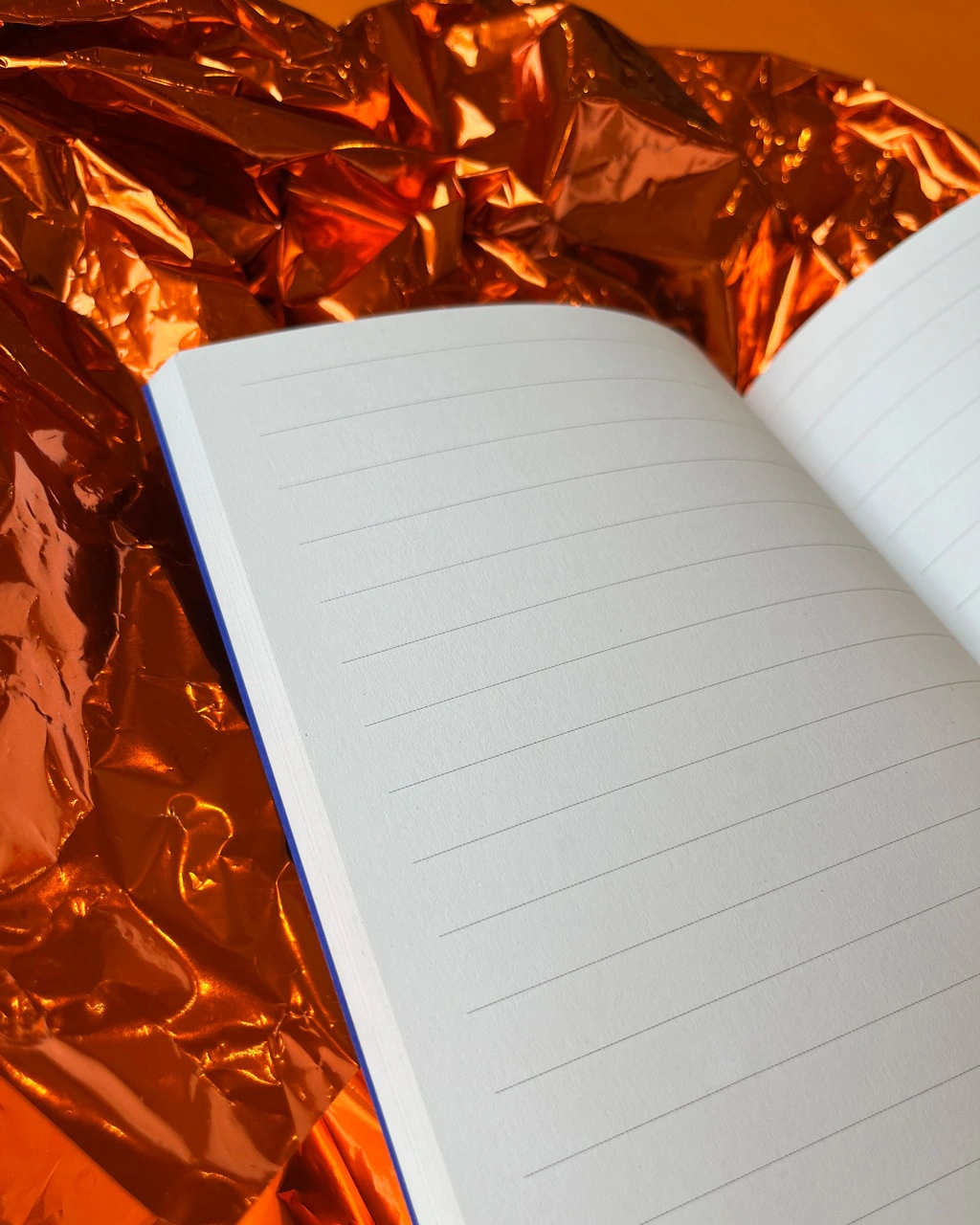 Pour @laseinemusicale fabrication d’un carnet de notes avec un marquage à chaud en couverture sur du papier teinté masse 100% recyclé. Pose manuelle d’une toile de reliure sur le dos, papier intérieur ligné.