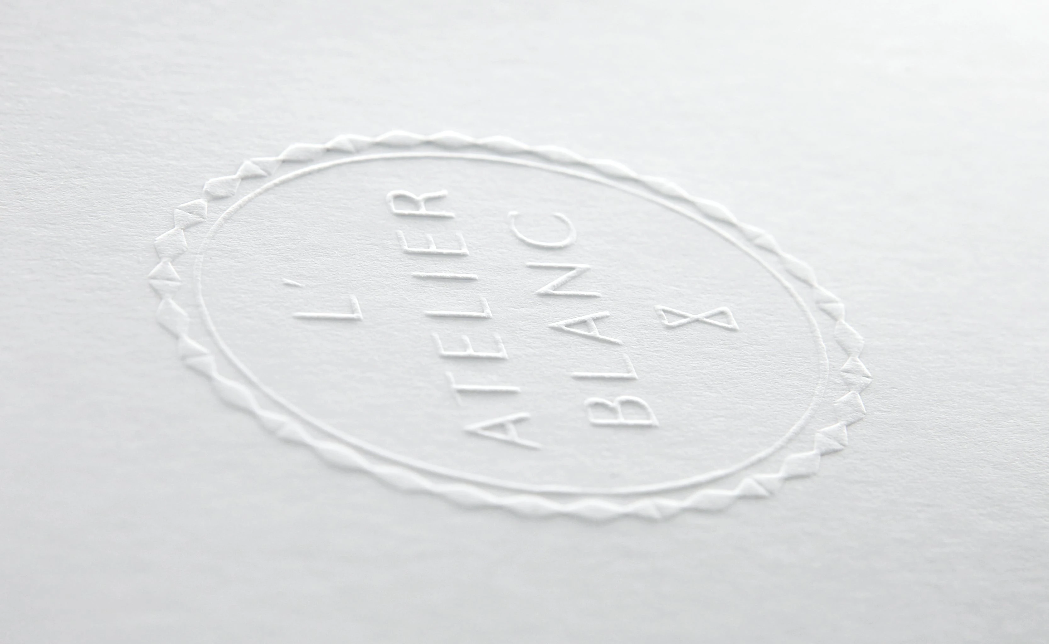 L’enjeu de la communication de l’Atelier Blanc c’est le blanc. Nous avons choisi un seul papier, blanc, le Sirio white / white et nous varions les grammages et techniques d’impression en fonction des outils et des besoins.